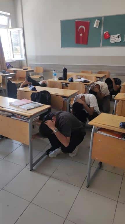 Okulumuzdaki tüm sınıflarımızda, 26.09.2025 perşembe günü saat 11:30'da ülkemiz genelinde de uygulanan "Afet Farkındalık Eğitimi" ve ardından deprem tatbikatı düzenledik.