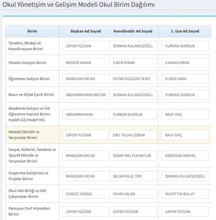 Okul Yönetişim ve Gelişim Modeli Ekibimiz